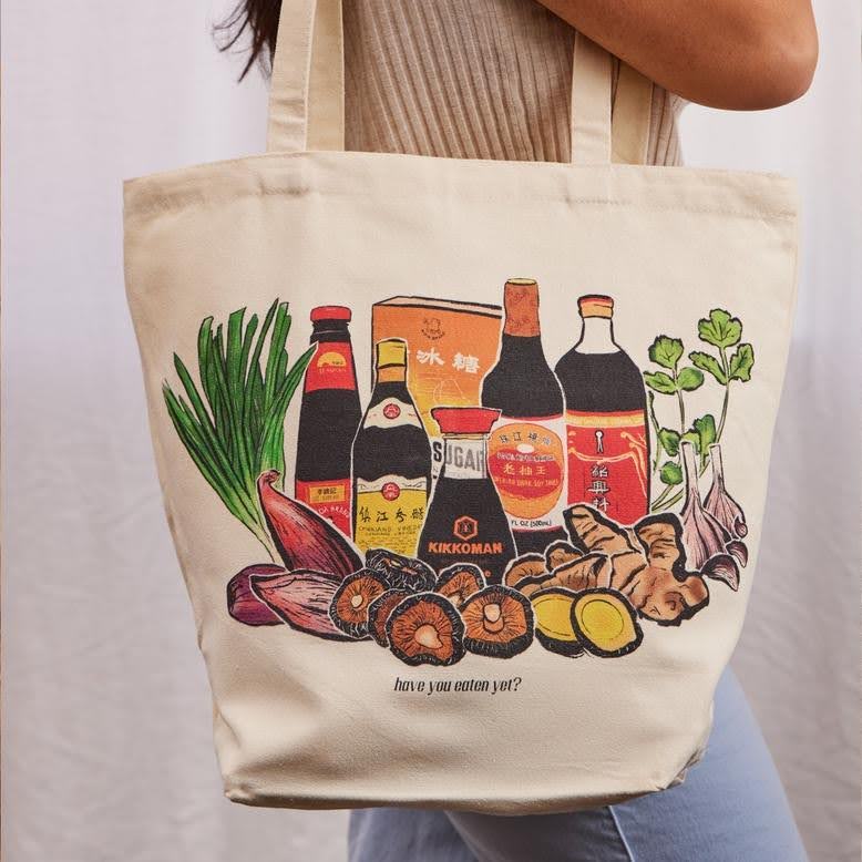 “Have You Eaten Yet?” If my mom came over to my house, what would she need to make a really successful meal? For me, this tote evokes family, home, and hearth.